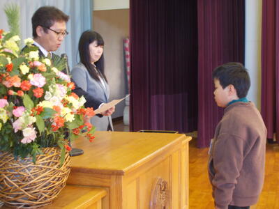 受賞者の4名はもちろんのこと、それを見守る20名の児童もとても立派な態度で式に臨むことができました。