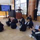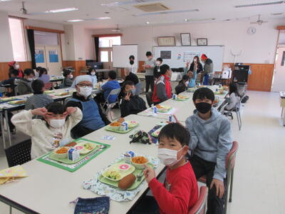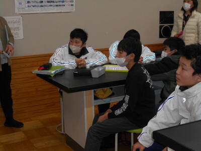 須賀川っ子6年生は、他校の6年生や中1生とコミュニケーションを図りながら楽しそうに学習を進めていました。