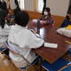 まずは室内での昔あそびです。けん玉とメンコをしました。