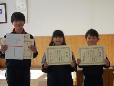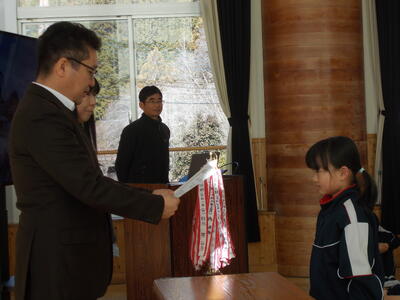 その後には、書初展とあいさつ名人の表彰を行いました。