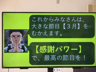 昨日のさわやかタイムでは、全校生で別れの言葉の練習をしました。