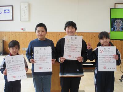 講話の後は、県小学校駅伝大会、下野教育美術展、あいさつ名人の表彰がありました。