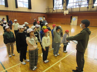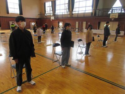 さわやかタイムには在校生が、体育館で別れの言葉の練習をしました。
