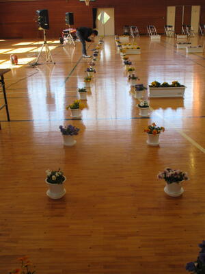 在校生により鉢花も会場に運び込まれ、卒業式間近です。