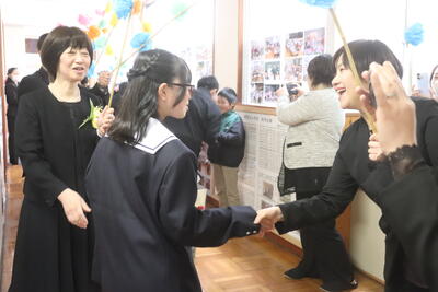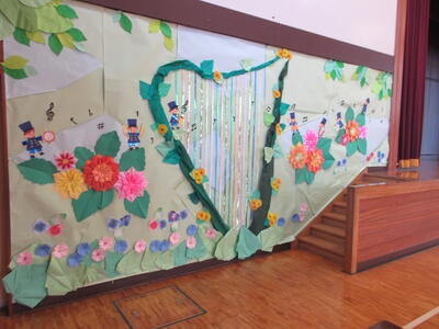 卒業式に向けて、環境ボランティアの橋本さん、戸村さんに作成していただいた素晴らしい作品が、会場を一層華やかにしています。