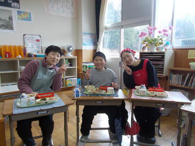 小学校卒業祝い献立で、お赤飯やお祝いケーキなど豪華な献立でした。