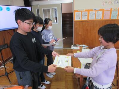 本日をもって、令和6年度の全ての教育活動が無事終了しました。1校時に行われた修了式では、子供たちが、それぞれの学年の全課程を修了したことを記した「修了証書」を受け取りました。