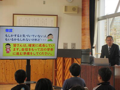 校長からは、子供たち一人一人が確実に成長していることが伝えられました。そして、次の学年に進む準備をしっかり整え、自信をもって新たなステージに進んでほしいというメッセージが送られました。