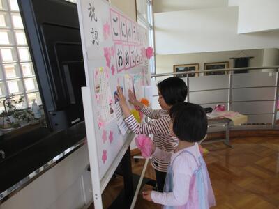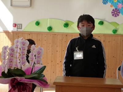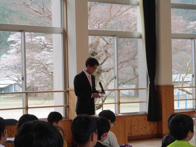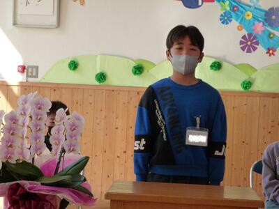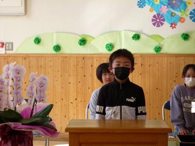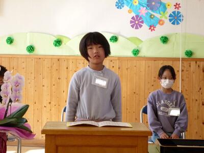 6年生の代表児童から新入生へ歓迎のことばです。さすがは6年生!原稿も見ずに、堂々と、そして優しくお話しできました。