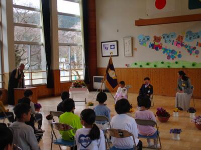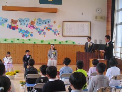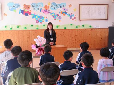 今、皆さんの目の前にいるお兄さん、お姉さんたちも、皆さんが入学してくることを、とても楽しみにしていました。お兄さんやお姉さんたちと、遊んだり勉強したりすることが、これからたくさんあるので、楽しみにしていてください。