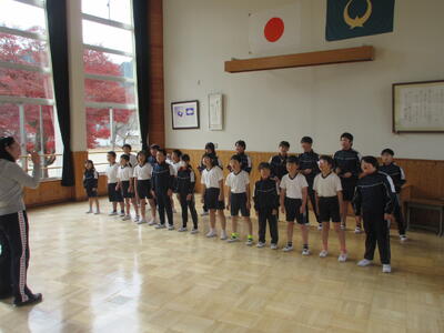 今日のさわやかタイムは、マラソン大会等の表彰と与一くん駅伝大会に向けて襷の授与式を行いました。