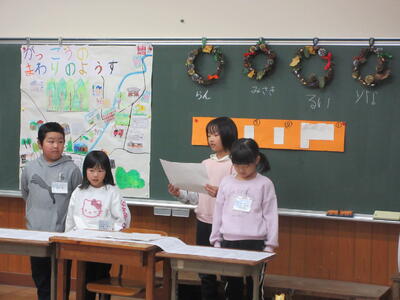 高学年は、これから更に須賀川地区を盛り上げていくにはどうしたらよいかについて、学んできたことや収穫祭に参加したことをまとめ、発表しました。