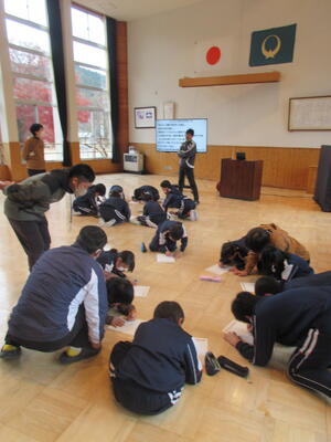 須賀川地区生涯学習推進協議会の皆様に教えてもらいながら、須賀川っ子もチャレンジです。