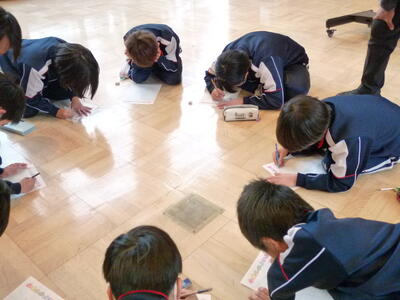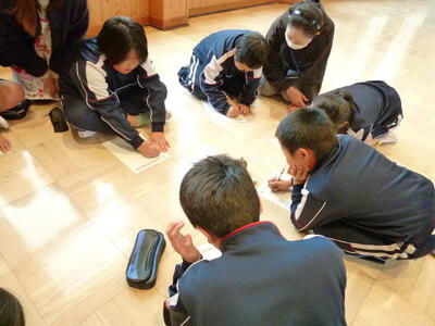 今日は2~4時間目にかけて、3~6年生の書き初め毛筆指導(2回目)がありました。