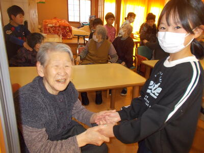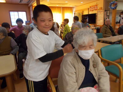 今日は2時間目に3・4年生が「ひなたぼっこ」に行って、おじいちゃんおばあちゃんたちと交流しました。