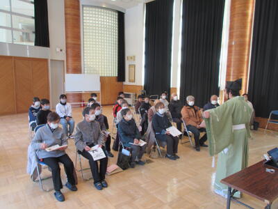集会ではまず校長講話を行いました。テーマは「お正月スペシャル」。お正月にまつわる伝統文化についてお話ししました。