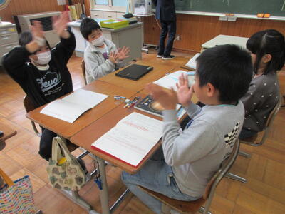 また、2年生が黒羽学園の4つの小学校合同のリモート学習でした。