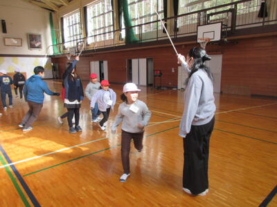 はじめは1~5年生がかくれます。4人が制限時間をかくれとおすことができました。