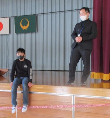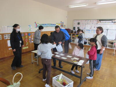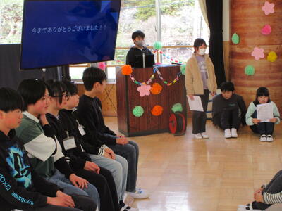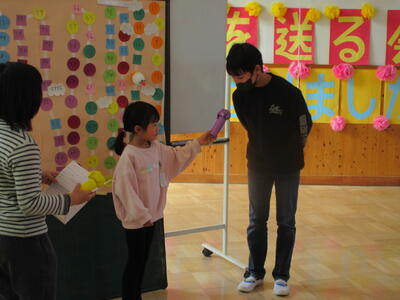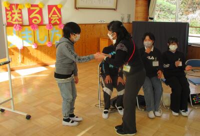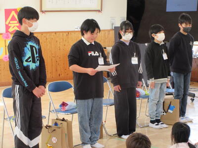 閉会式では、1~5年生から6年生へのプレゼントの贈呈です。