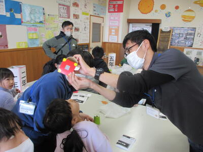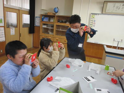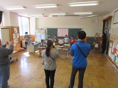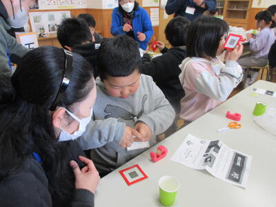 一斉に出された声が誰の声なのかをなかよし班ごとに答えます。