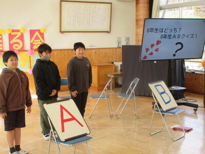 6年生一人一人にまつわるクイズの答えをAとBから選ぶことで、6年生の意外な一面も知ることができました。