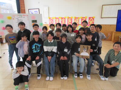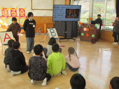 いろいろなクイズが出たのですが、最後に、クイズの答えの頭文字を組み合わせると、6年生へのメッセージになりました。