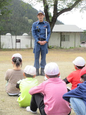 はじめに、交差点や横断歩道の安全な歩行について、交通教育指導員さんのお話を聞きます。