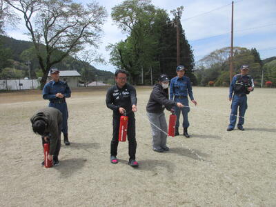 次に水消火器を使った消火訓練です。