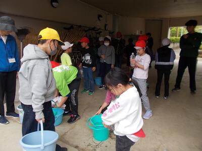 水道が近くにあるわけではないので、ペットボトルに入れた水も学校から持参します。