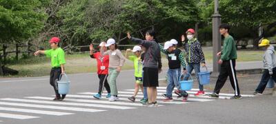 次に、学校の周りの道路で、学んだことを実際にやってみます。