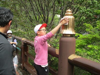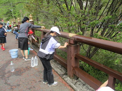 擬宝珠や欄干のよごれがどんどん落ちていきます。