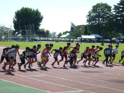 今日は、絶好の秋晴れのもと市内小学校陸上大会がDI STADIUMで行われました。