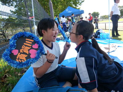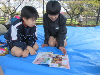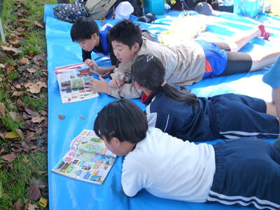 競技の合間に6年生は修学旅行に向けての下調べです。