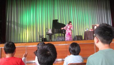 10月8日(水)本校体育館で「ちひろコンサート みんなちがって、みんないい。~金子みすゞの心とともに~」を開催しました。御来場いただいた保護者の皆様、地域の皆様、誠にありがとうございました。ちひろさんの優しく美しい歌声で、多くの皆様方ともに、金子みすゞさんの詩の心を共有できたことは、本校教育の更なる推進に向け大きな財産となりました。