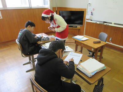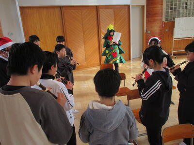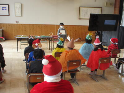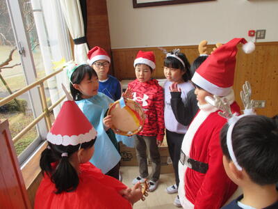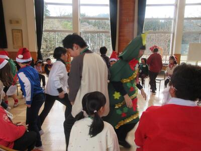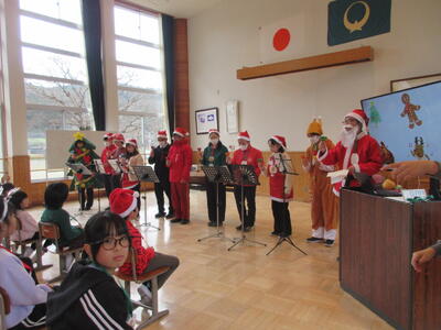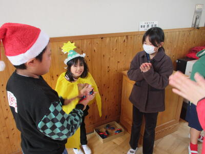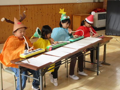 クリスマス会では、低中高学年ごとに出し物をしました。