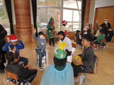 3・4年生は、クリスマス劇と爆弾ゲーム。