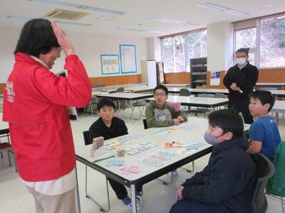 須賀川地区生涯学習推進協議会の皆様に教えてもらいながら、須賀川っ子もチャレンジです。