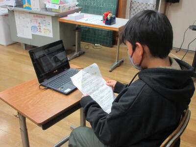 リモート学習の内容は「総合的な学習の時間」の発表でした。