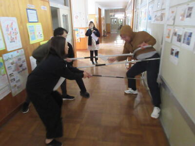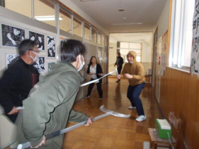 放課後は須佐木駐在所の大竹様に来校いただき、教職員の危機管理講習の一環として「さすまた」の使い方を教えていただきました。