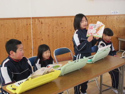 本校5年生は、11月に行った収穫祭に参加したことを中心に、学習の成果を発表しました。