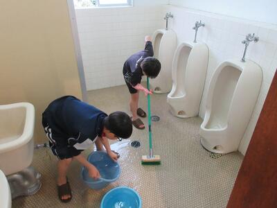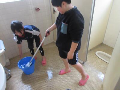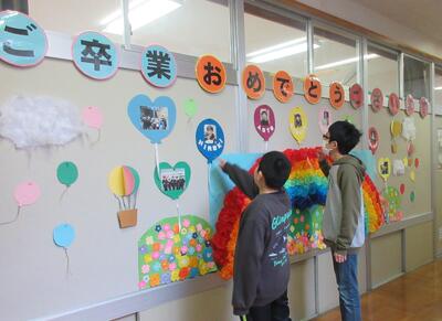 6日の5・6時間目に、3・4・5年生が卒業式の準備(会場づくりなど)を行いました。