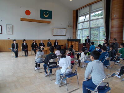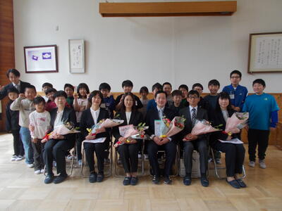 今日は、3月の定期異動で本校を離れることとなった先生方とのお別れの式を行いました。
