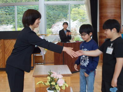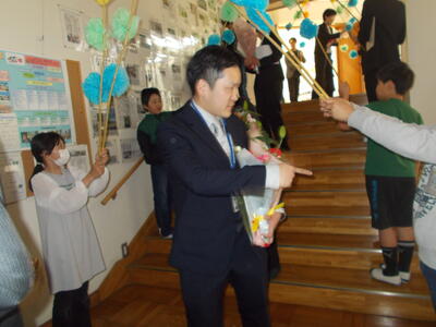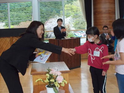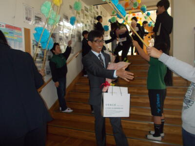 最後に、みんなでにっこりスマイルで記念写真を撮り、校長室までお見送りました。