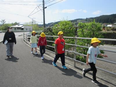 次に、学校の周りの道路で、学んだことを実際にやってみます。