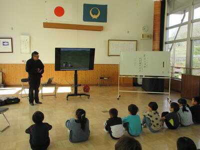 1.2年生は、2年生の国語の教材「スーホの白い馬」の学びを基に、物語の舞台であるモンゴルについての話を聞き、実際に馬頭琴の演奏を聴きました。子供たちは、モンゴルと日本の生活の違いに驚いていました。